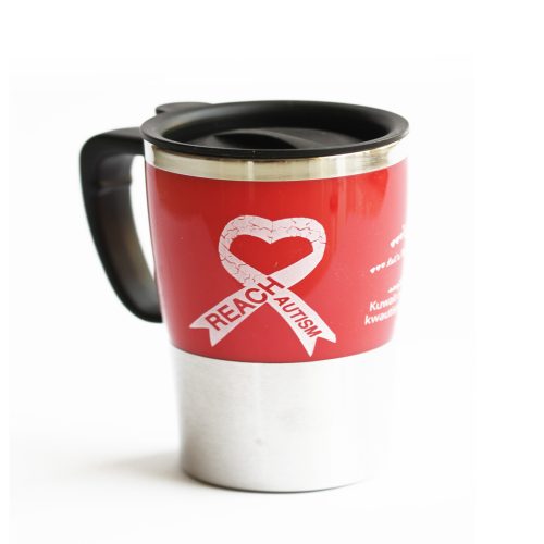 كوب حراري أنيق بتصميم شعار REACH AUTISM، يجمع بين العملية والتوعية. مصنوع من ستانلس ستيل بغطاء محكم للحفاظ على حرارة مشروبك، ويعبر برسالته عن دعمك لأبطال التوحد بكل فخر.